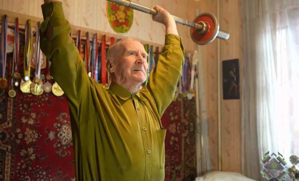 «Я даже не чувствую, что я старик. Вы представляете. Я вот тренируюсь вот здесь три раза в неделю. Тренировка длится по два с половиной часа. Вот с гантелями [занимаюсь] час и со штангой полтора часа. И чувствую после тренировки, как заново родился. Вы чувствуете? Вообще! Я себя не чувствую, что я в преклонном возрасте. Вот такое состояние», — поделился ветеран тяжелой атлетики.