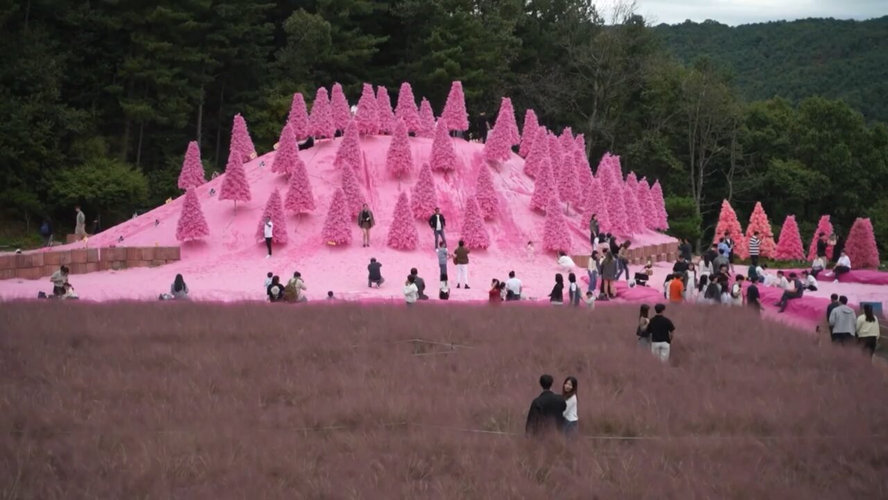 Жители со всей страны стекаются на южнокорейский травяной остров Пхочхон, чтобы посетить на Pink Muhly Festival, посвященный волосовидному розовому растению — мюленбергия.