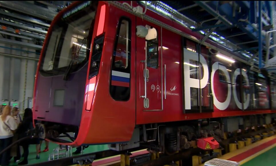 На кадрах на корпусе состава размещены исторические справки и изображения, посвященные ключевым достижениям России в сфере космонавтики.