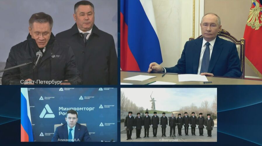 Президент России Владимир Путин в режиме видеоконференции во вторник принял участие в церемонии закладки шестого серийного универсального атомного ледокола «Сталинград» в Санкт-Петербурге.