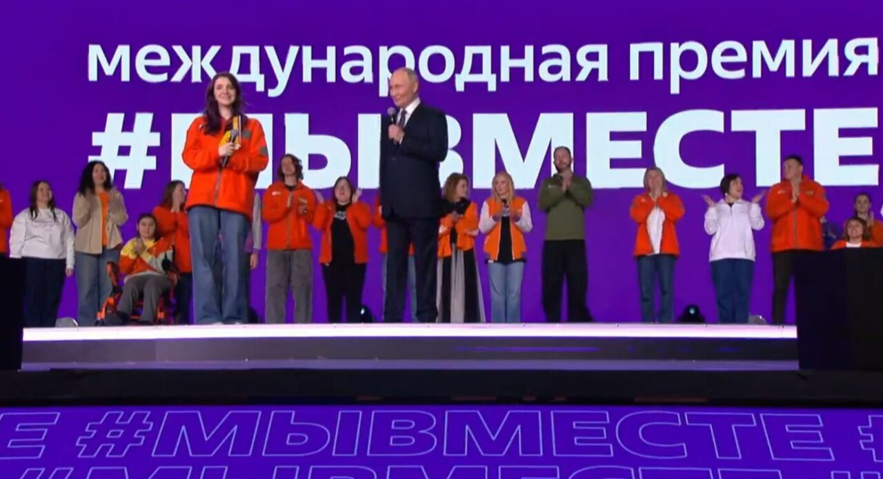 Президент России Владимир Путин в среду принял участие в международном форуме гражданского участия «Мы вместе», который проходит в национальном центре «Россия» в Москве.