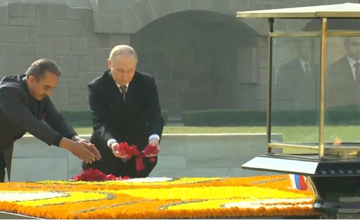 Президент России Владимир Путин в пятницу в Нью-Дели посетил мемориальный комплекс Радж Гхат, где почтил память лидера индийского национально-освободительного движения Махатмы Ганди.