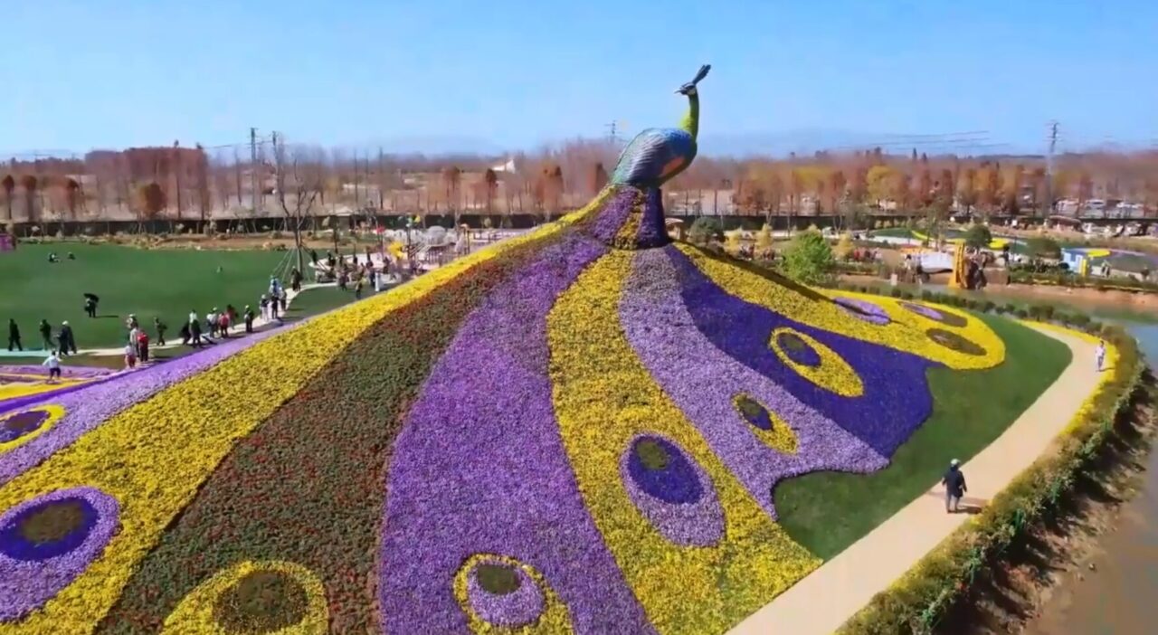Не зря павлина называют царь-птицей: в китайском парке Дунань в Куньмине создали скульптуру пернатого из 130 видов цветов.