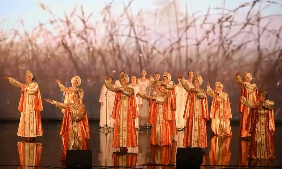 На кадрах девушки в традиционных нарядах исполняют русские народные и современные песни, водят хороводы и танцуют. Также на видео — выступление марокканской группы.