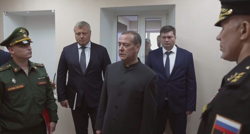 Заместитель председателя Совета Безопасности РФ Дмитрий Медведев в пятницу посетил военный комиссариат Астраханской области во время рабочей поездки в Южный федеральный округ.