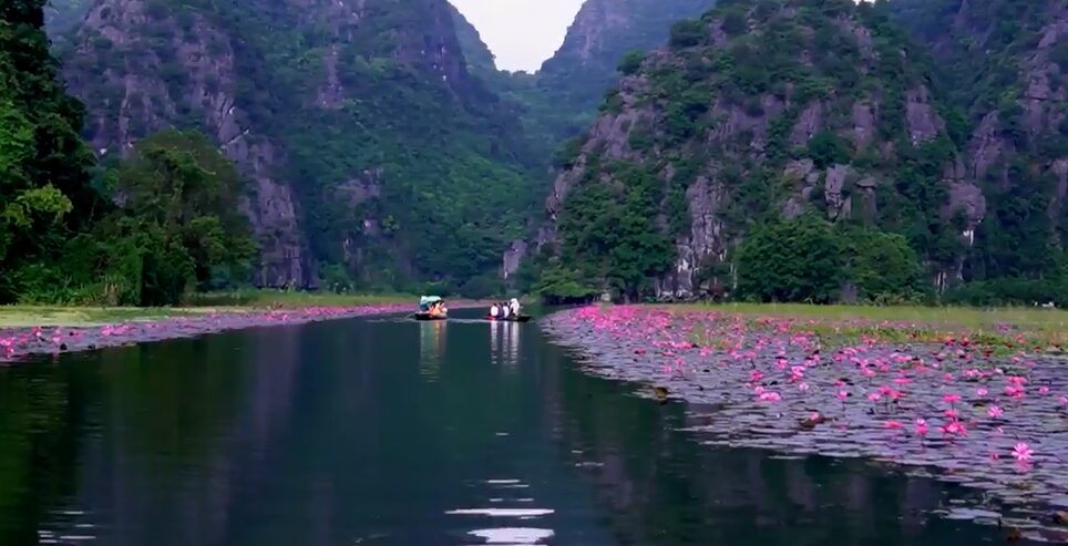 Живописная долина Там Кок в провинции Ниньбинь на севере Вьетнама стала местом притяжения туристов: на реке Нго Донг начался пик цветения водяных лилий.