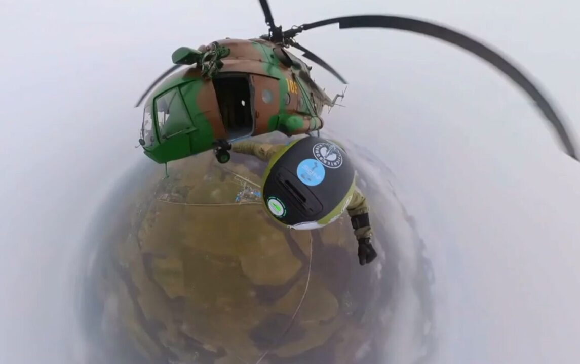 На кадрах, снятых во вторник, бойцы выполняют прыжки из вертолета Ми-8 с высоты 1 500 метров. Высадка проводилась со штатным оружием и снаряжением. Военнослужащие применяли современные отечественные парашютные системы.