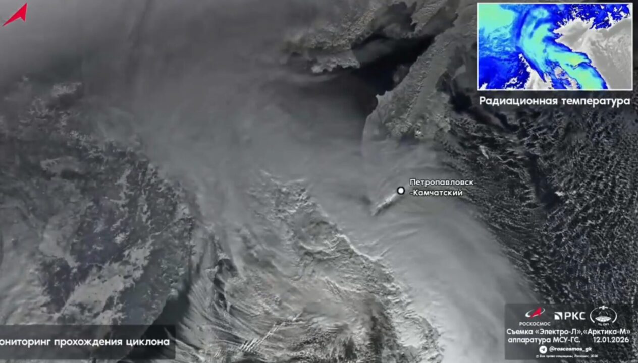 Спутники госкорпорации «Роскосмос» зафиксировали прохождение мощного циклона над Петропавловском-Камчатским.