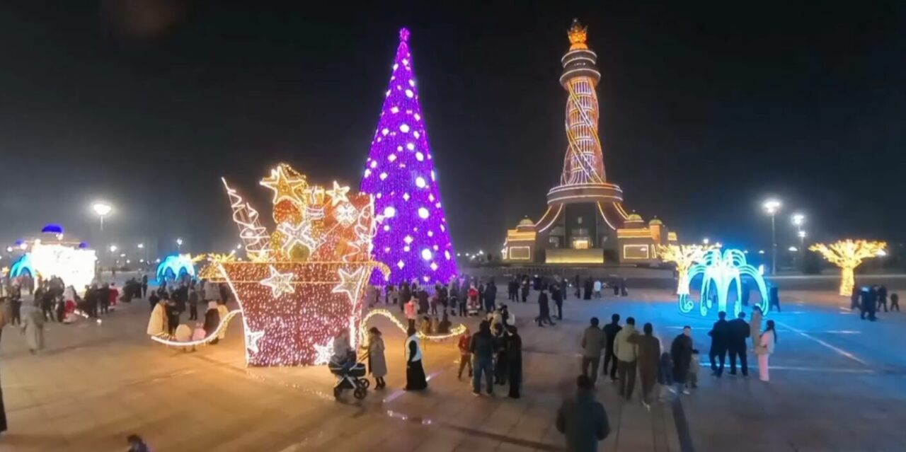 На кадрах украшенный красочными гирляндами и световыми инсталляциями Ташкент. На видео главная елка страны на площади Независимости в Душанбе.