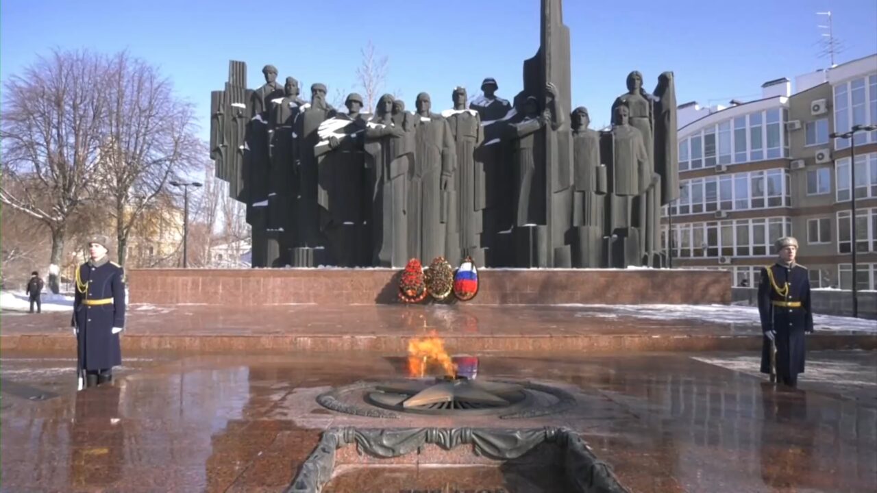 К вечному огню на площади Победы в Воронеже принесли цветы и венки. Торжественная церемония прошла накануне Дня защитника Отечества.