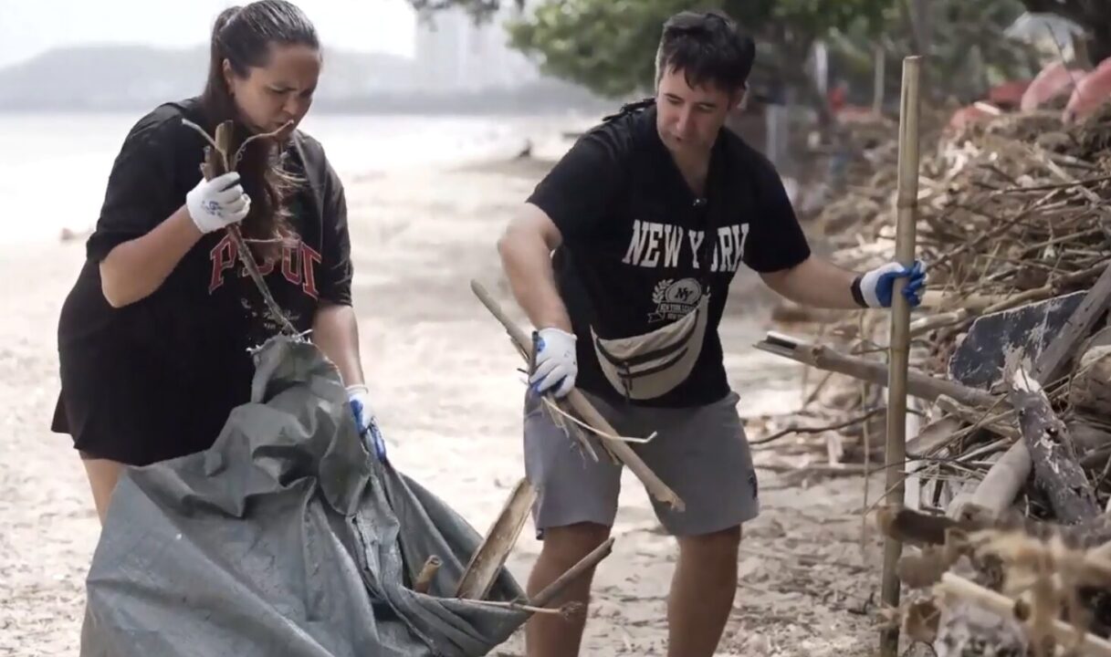 На кадрах, снятых в понедельник, добровольцы сортируют гуманитарную помощь по пакетам и убирают с пляжа мусор и сломанные ветки.