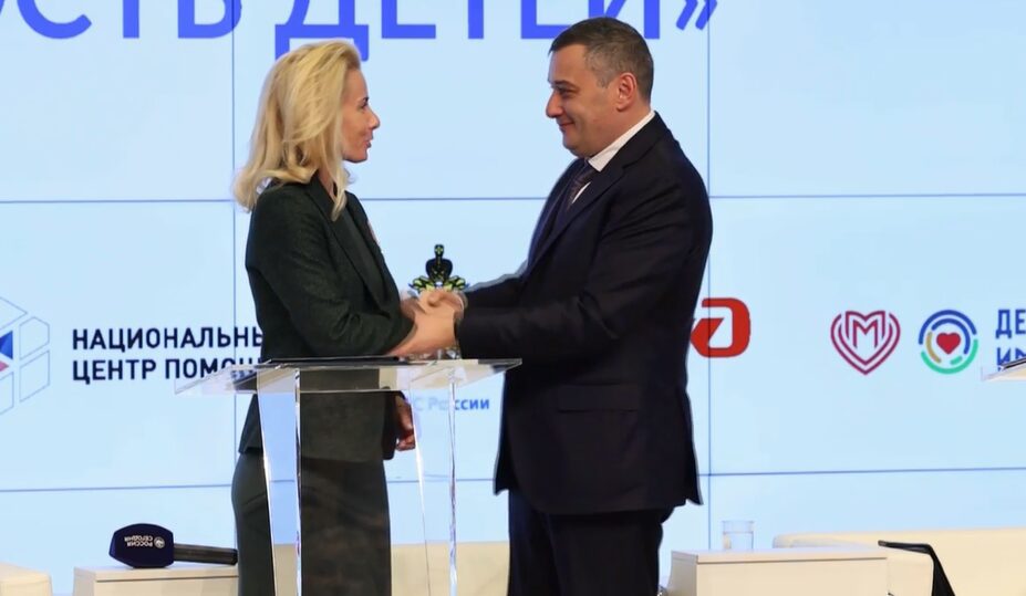 Губернатор Курской области Александр Хинштейн вручил медаль защитника региона председателю попечительского совета центра помощи пропавшим и пострадавшим несовершеннолетним Елене Мильской на национальном форуме «Здоровье и безопасность детей» в Москве в среду.