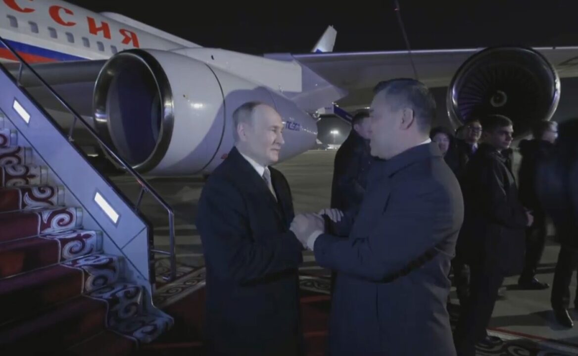 Президент Кыргызстана Садыр Жапаров торжественно встретил своего коллегу из РФ Владимира Путина в аэропорту Бишкека во вторник.